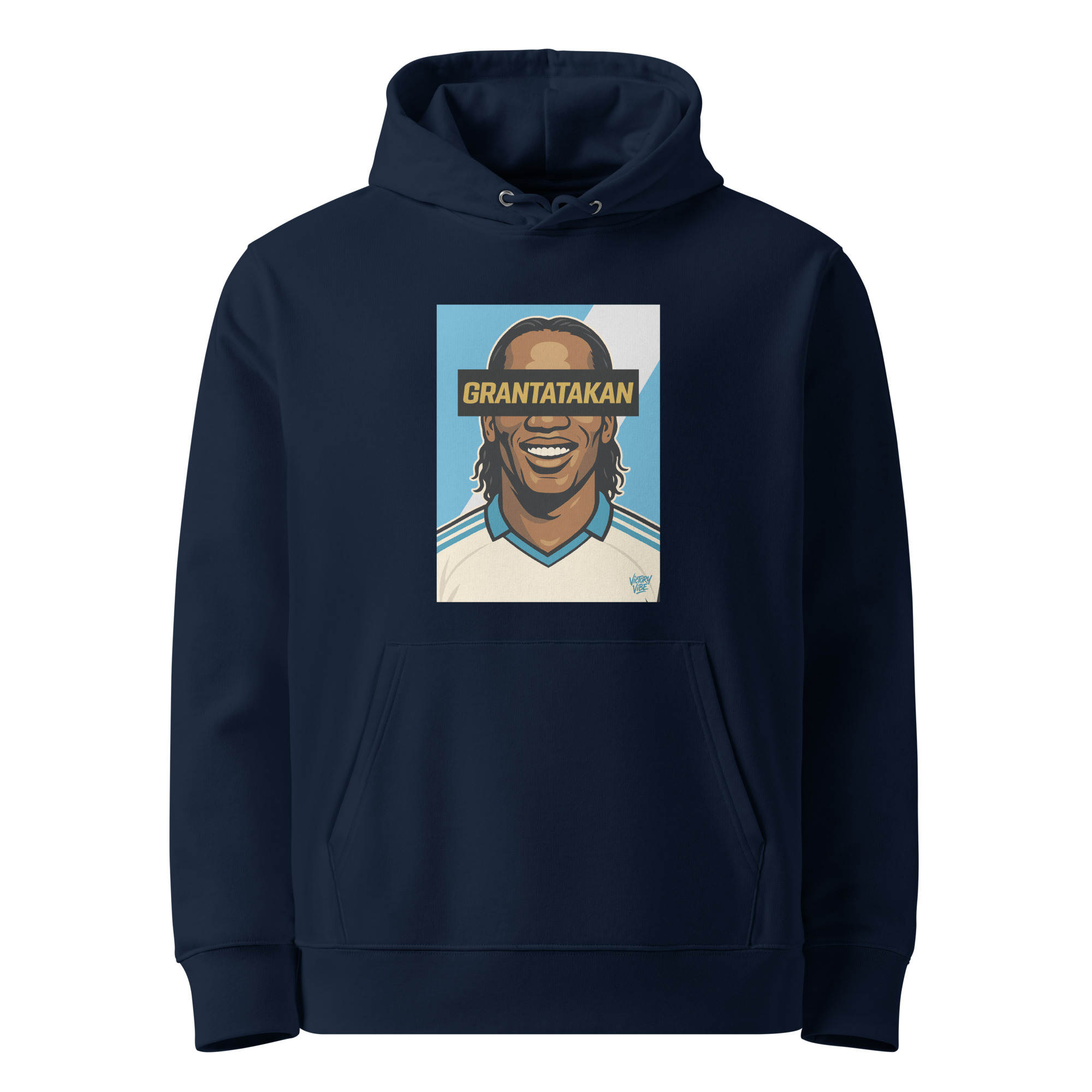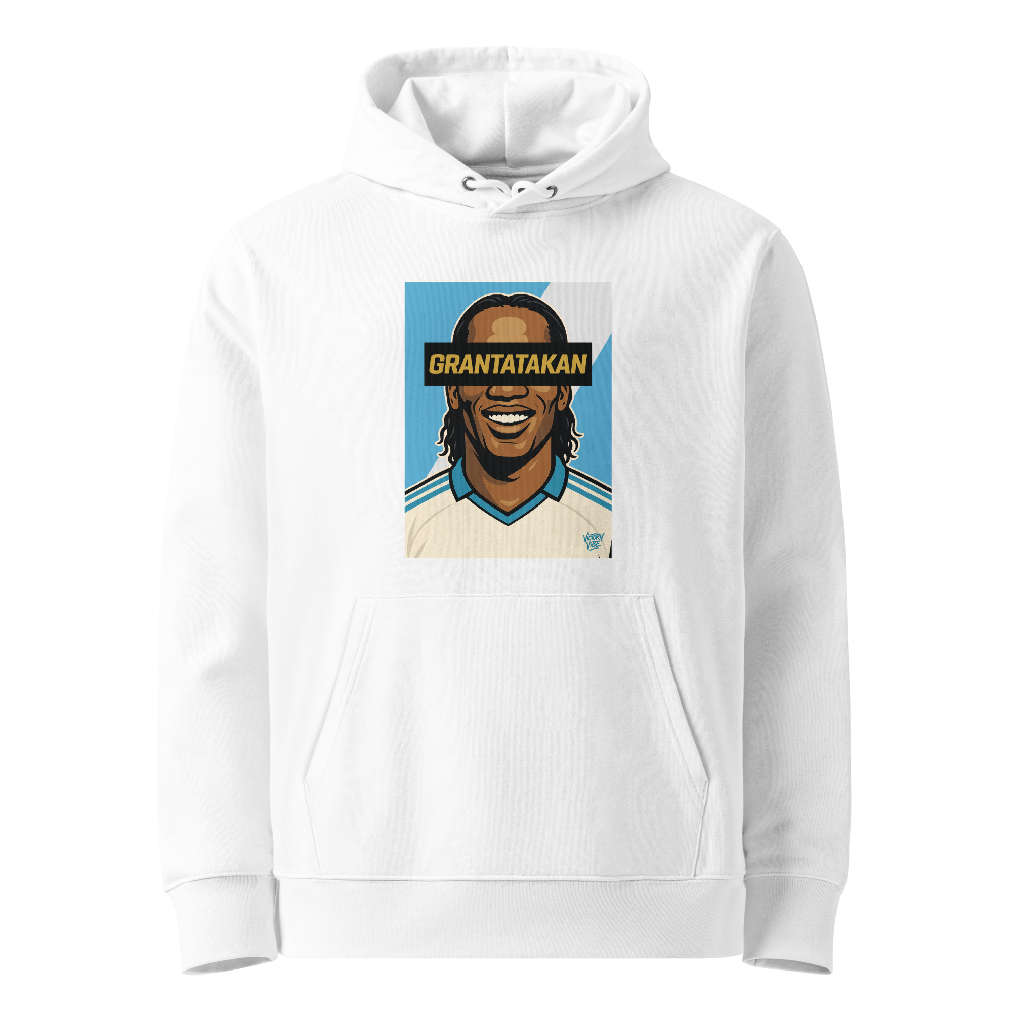 Sweat à capuche GRANTATAKAN Marseillais Ivoirien – Fond bleu et blanc – Victory Vibe